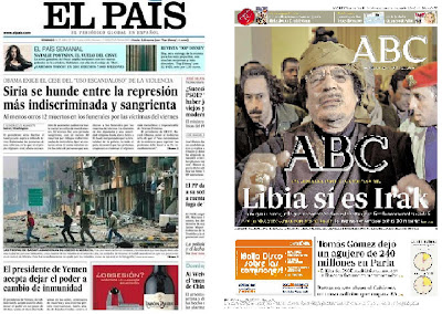 En pleno flechazo occidental con las revueltas y los revolucionarios, la situación libia fue un jarro de agua fría. Cuando empezó a ser imposible sostener que los llamados rebeldes eran lo mismo que los manifestantes de Tahrir, los periódicos tuvieron que responder. Aquí, de nuevo, puede hablarse de intereses, pensar que en el discurso acerca de la guerra libia hay mucho del reflejo del manejo de dineros en la trastienda. Pero eso ocurre a niveles más altos. En la redacción, un periodista es alguien que cree en la objetividad, no alguien que piensa en Repsol mientras redacta su noticia. Es alguien, también, por lo general, que tiene interiorizada en mayor o menor medida una concepción del mundo en cierto modo maniquea a inamovible, esa en la que las cosas deben ser de cierta manera y hay buenos y malos, listos y tontos según se cumpla o no con determinados patrones de comportamiento.